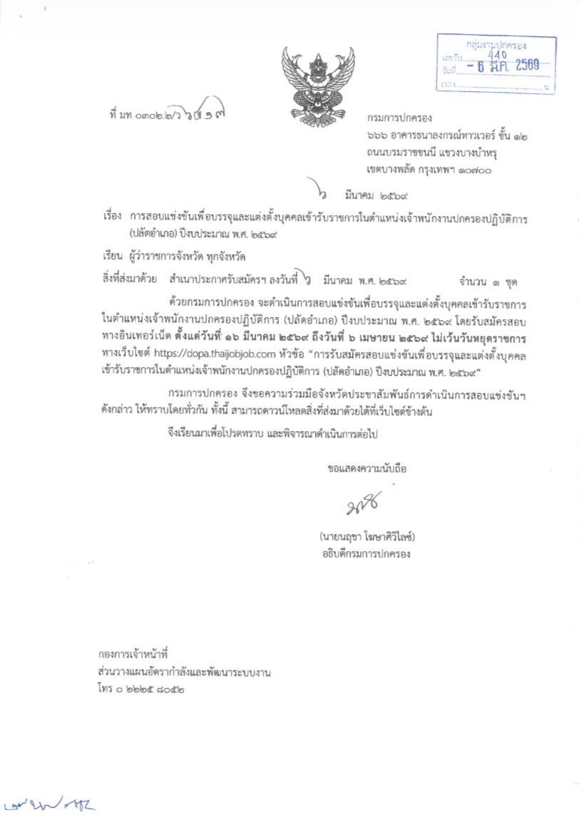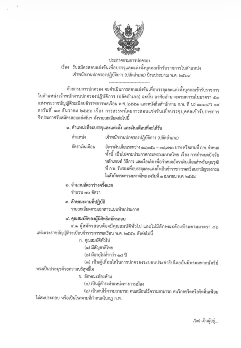 การสอบแข่งขันเพื่อบรรจุและแต่งตั้งบุคคลเข้ารับราชการในตำแหน่งเจ้าพนักงานปกครองปฏิบัติการ (ปลัดอำเภอ) ประจำปีงบประมาณ พ.ศ. 2569